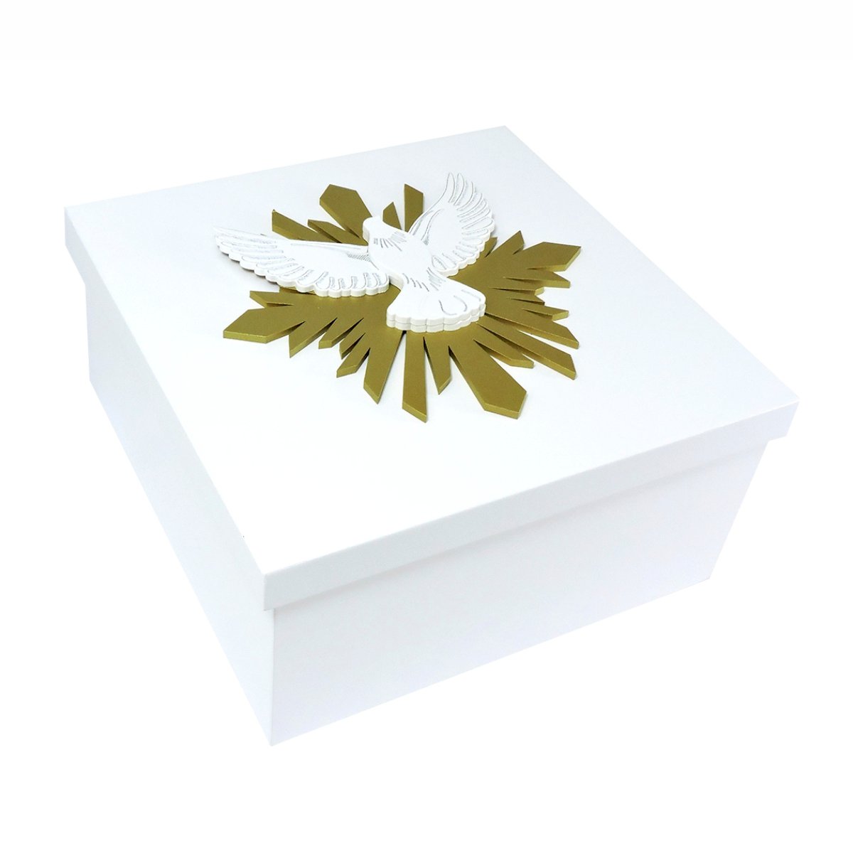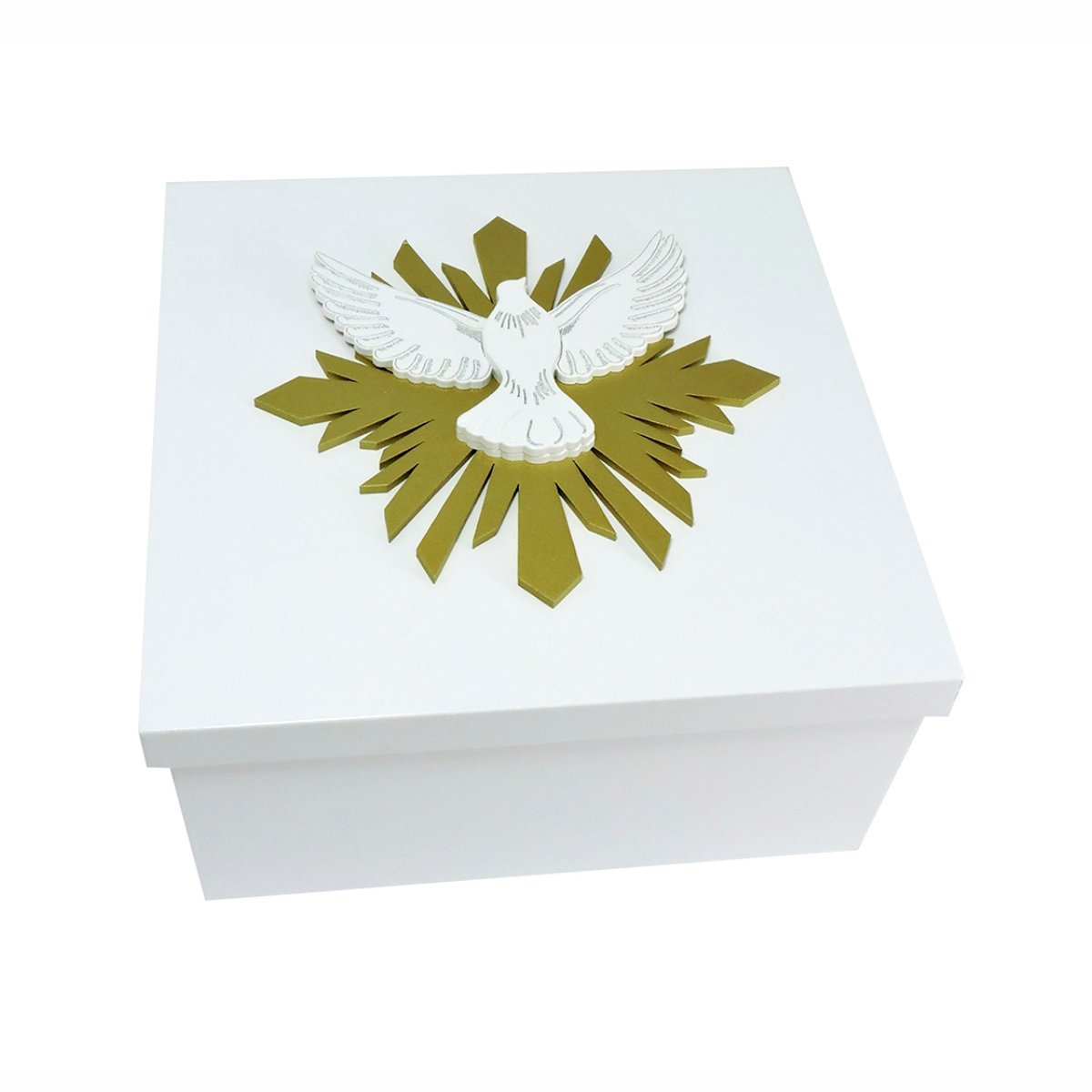 Celebre momentos especiais com a Caixa Espírito Santo, perfeita para lembrancinhas de batizado, convites para padrinhos ou presentes religiosos. Seu design combina fé, delicadeza e acabamento impecável, tornando-a uma peça memorável e sofisticada.