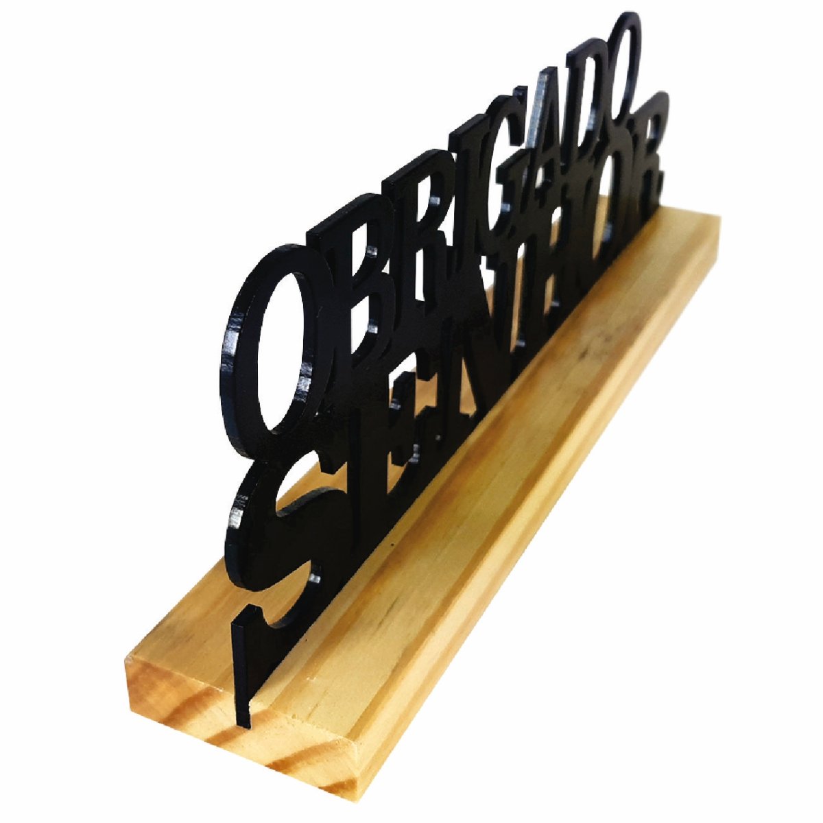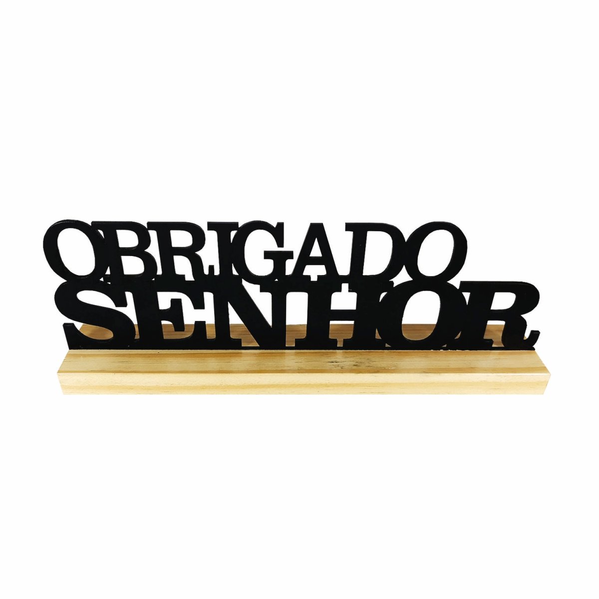 Enfeite de Mesa Religioso "Obrigado Senhor" em Madeira Maciça com Frase Decorativa – Presente e Decoração