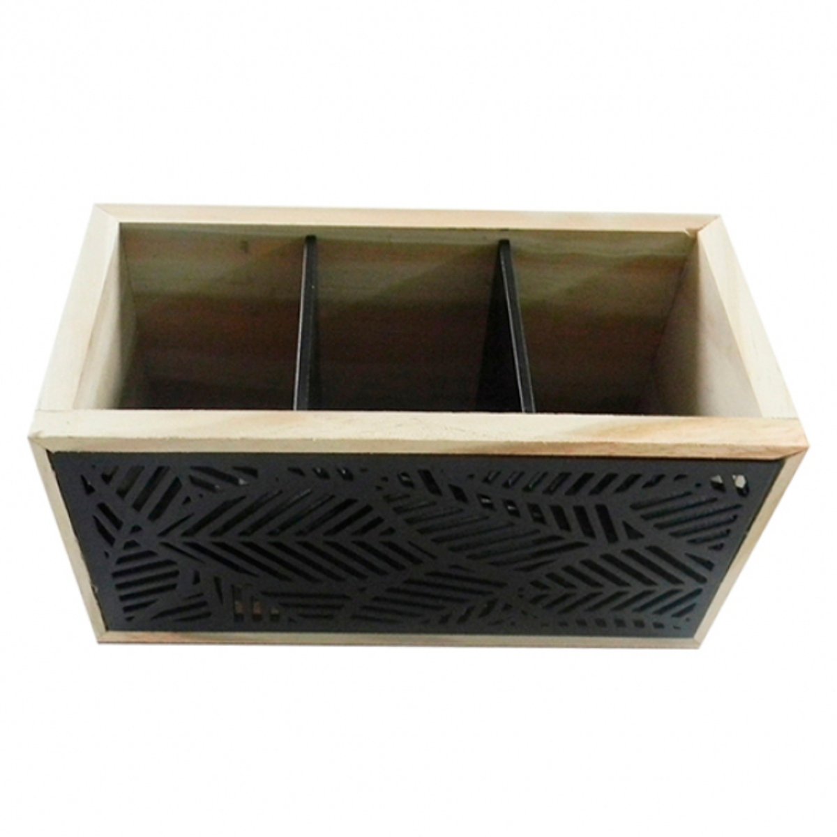 Início / Linhas de produtos / Linha Madeira / Porta-Controle de Madeira com Divisórias Removíveis – Design Vazado Decorativo – Preto ou Dourado – Linha Madeira