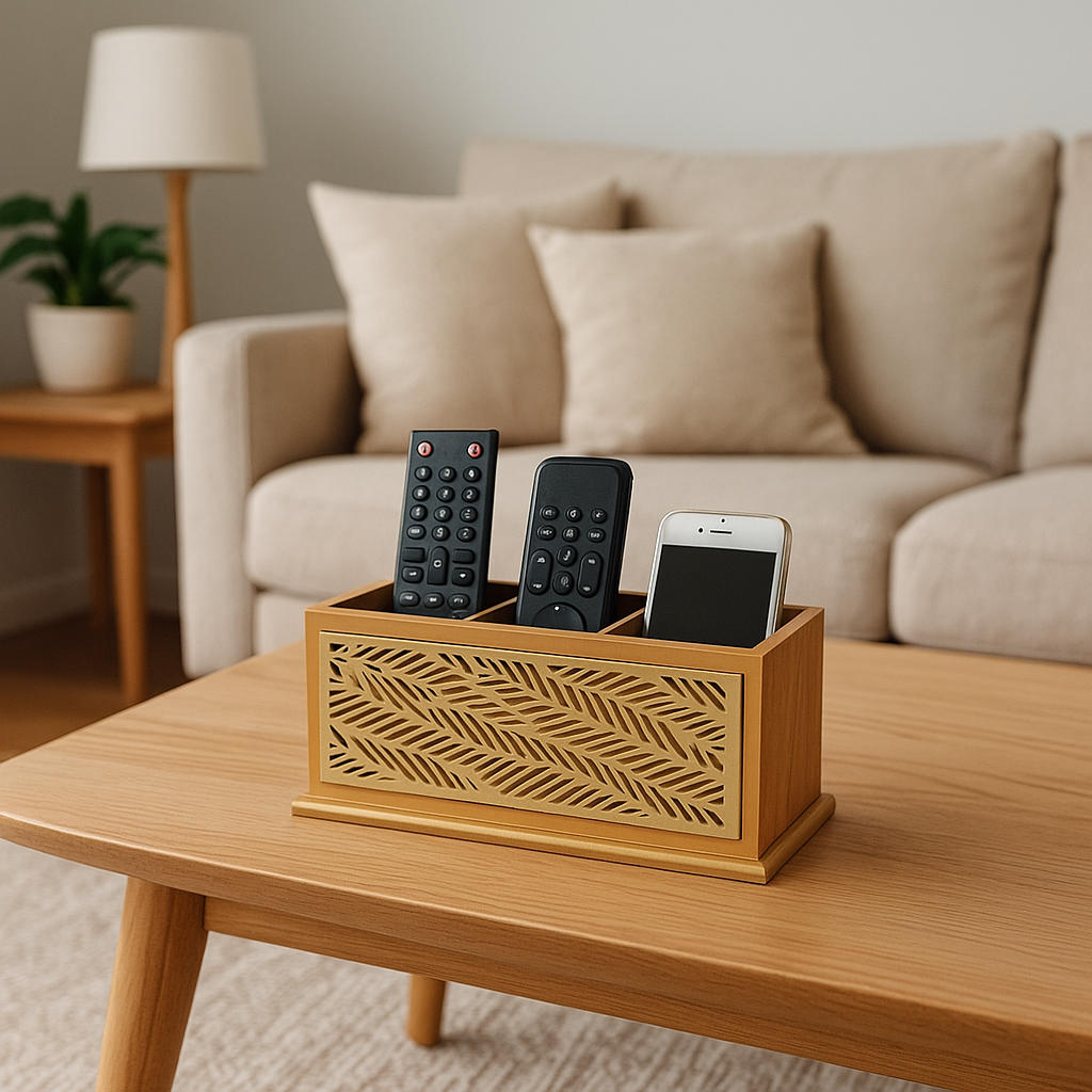 Ideal para organizar controles remotos, smartphones, carregadores, chaves, óculos e pequenos objetos, evitando bagunça e deixando sua sala, quarto ou escritório mais elegante e funcional. Perfeito para quem busca unir praticidade e decoração no dia a dia.