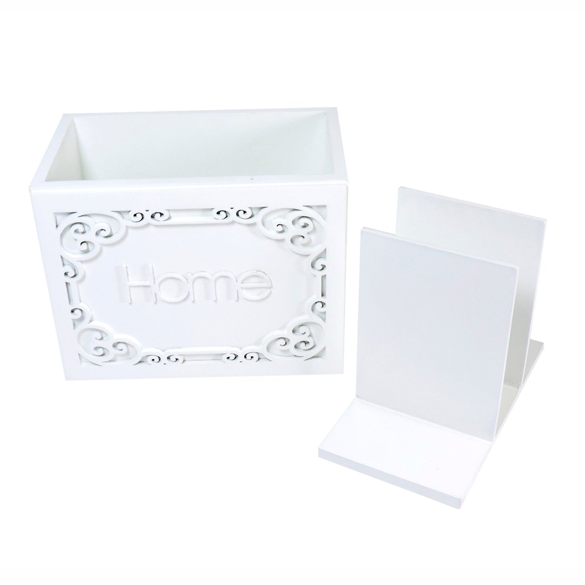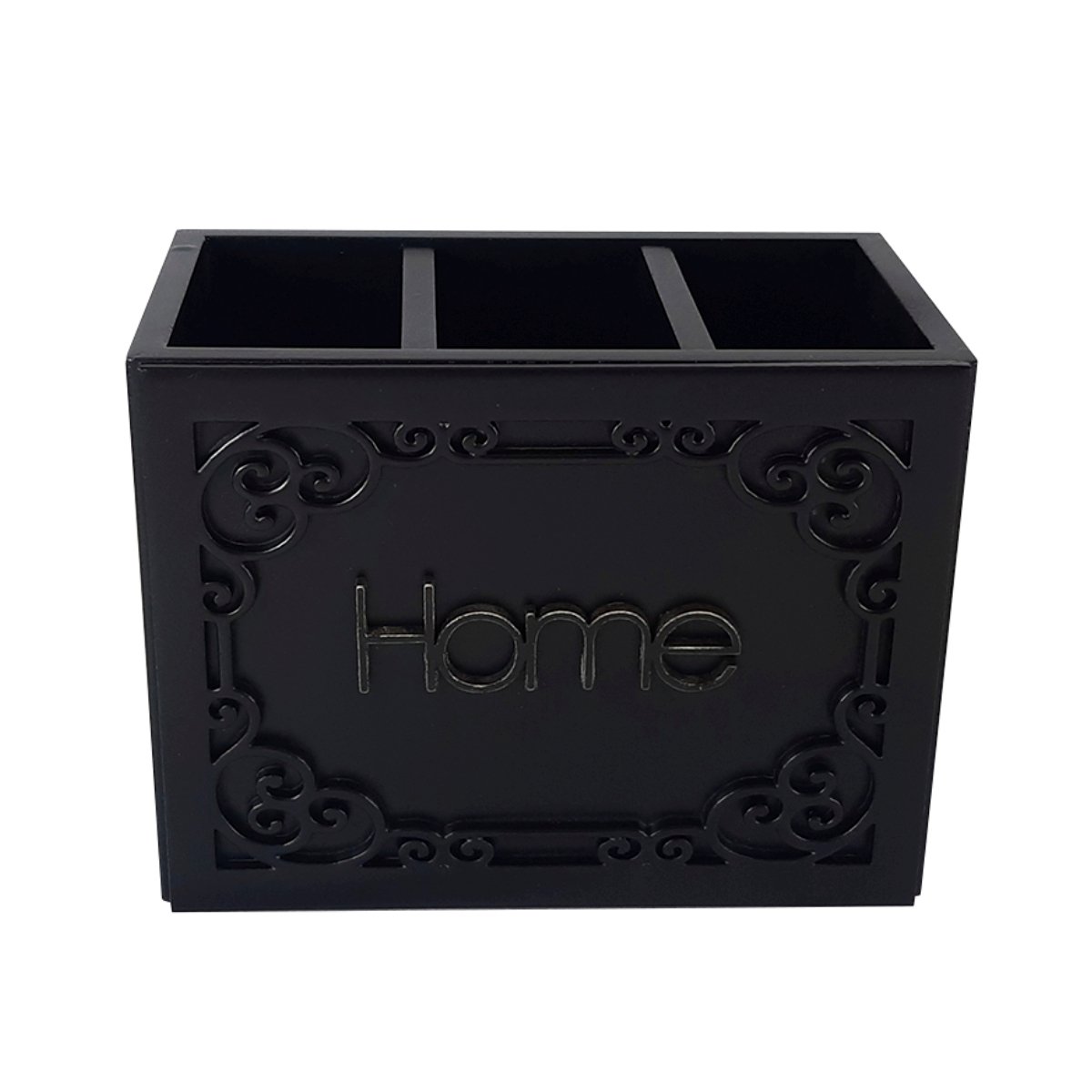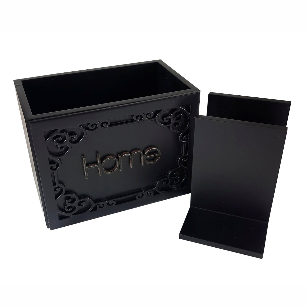 Organize seus controles e acessórios com muito estilo usando o Porta-Controle Home. Produzido em MDF de alta qualidade, possui design moderno com aplique arabesco na parte frontal e a palavra “HOME” em alto-relevo, trazendo sofisticação para sua sala ou escritório. Suas divisórias removíveis permitem personalizar o espaço interno para diferentes necessidades. A pintura PU garante acabamento impecável e durabilidade.